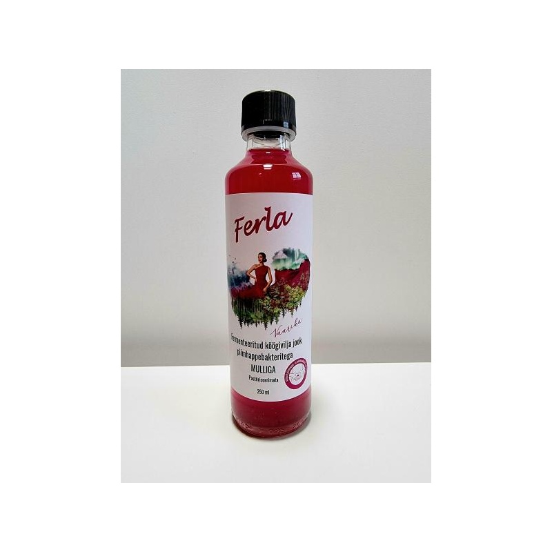 Ferla on Eestis käsitööna valmiv fermenteeritud köögiviljajook, mis sisaldab elusaid piimhappe- ja bifidobaktereid. Värske vaarikamaitse ja kerge mull muudavad selle joogi mõnusalt värskendavaks. See on pastöriseerimata, lisanditeta ning toetab soolestiku tervist ja seedimist.