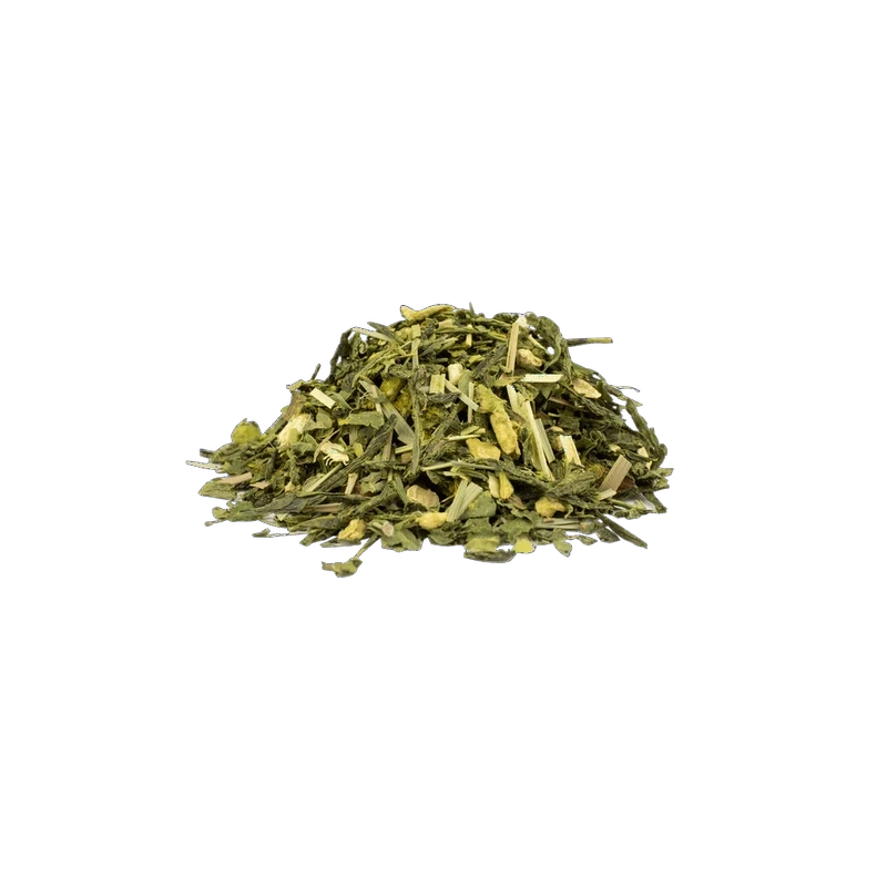 Roheline tee Sencha* (Hiina), ingver*, nõgeselehed*, mate* (Brasiilia), sidrunhein*, kaneel*, sidruniõli*, piparmündilehed*, roheline tee Matcha* (Hiina), kurkum*, goji marjad*, tšilli-cayenne’i pipar*, piparmündiõli*