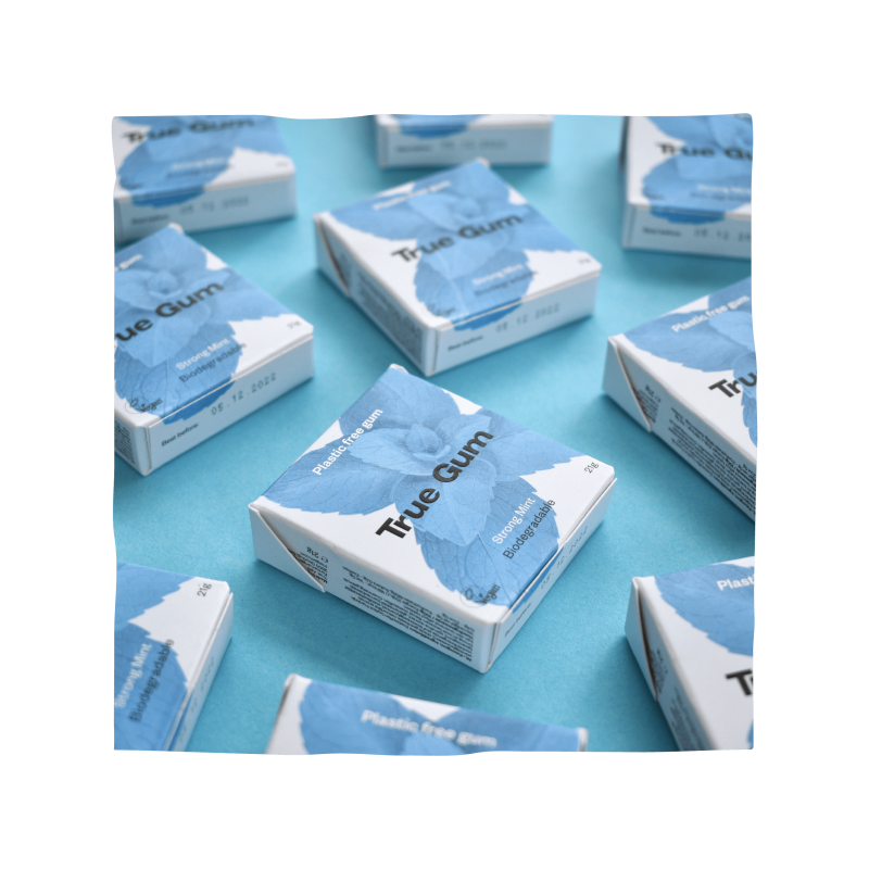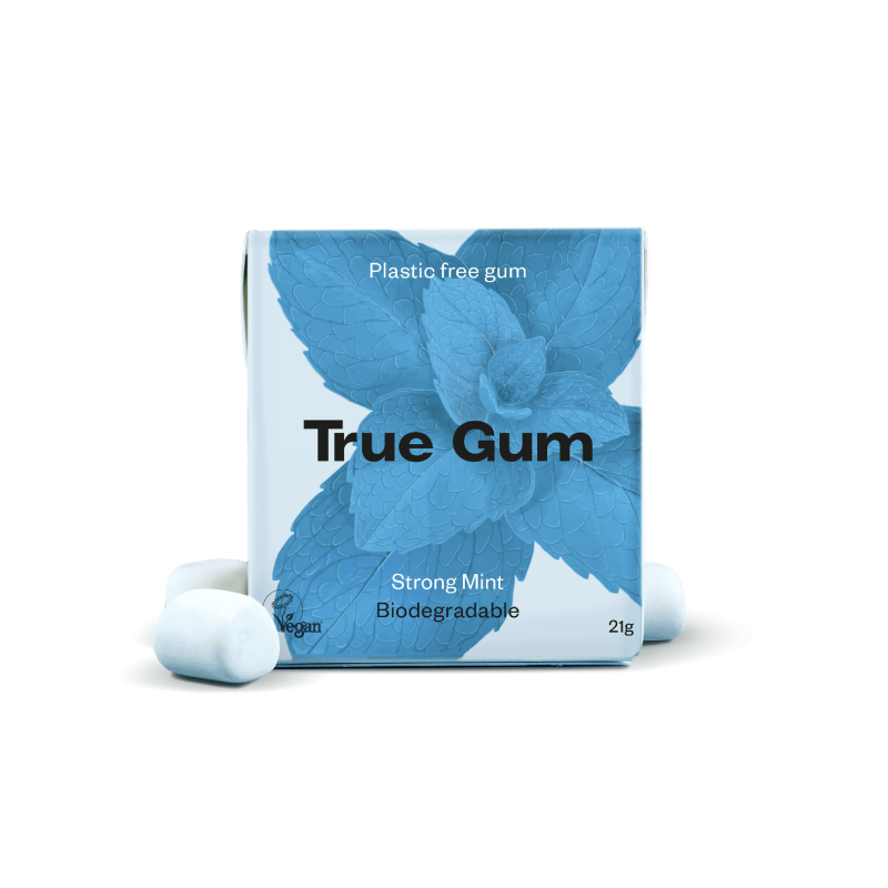 Looduslik sidrunimaitseline närimiskumm. True Gum närimiskummid on 100% plastivabad,