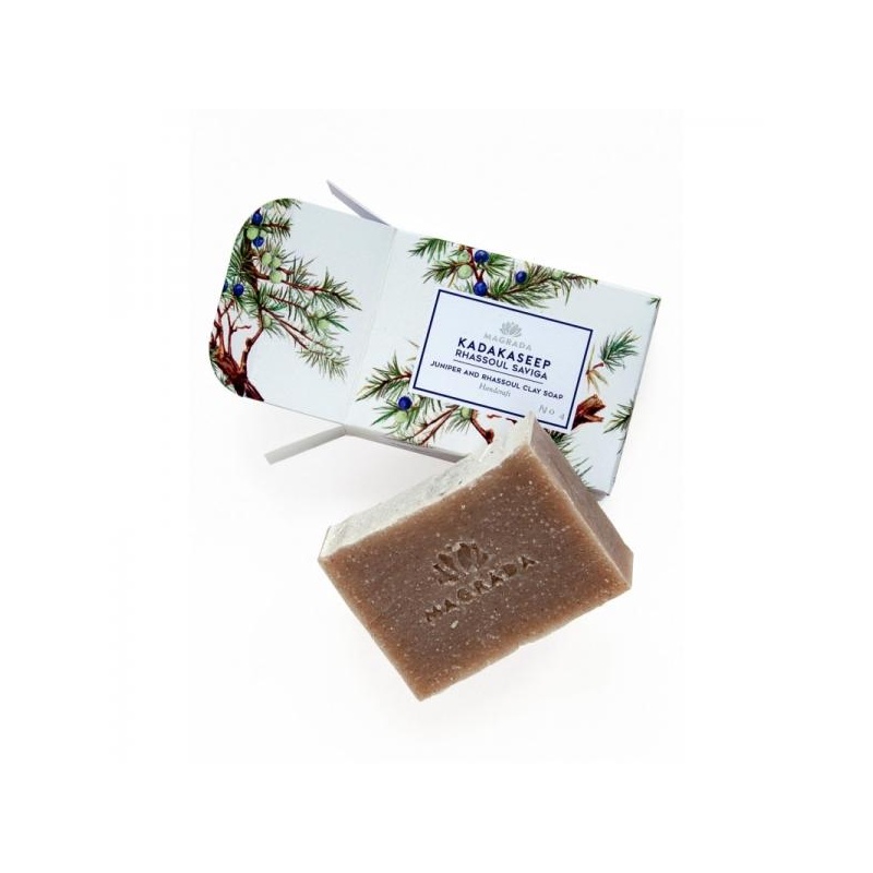 Meeldivalt maheda puiduse aroomiga seep sisaldab legendaarset, kõrgkvaliteetset Haapsalu lahe meremuda. Sügavpuhastava toimega ainulaadsete meremineraalidega seep eemaldab ihult mustuse, toksiinid ja pooridesse kinni jäänud rasu. Kadakaseebil on õrnalt kooriv struktuur ja antiseptilised omadused. Hinnaline ravimuda sisaldab bioaktiivseid ühendeid, millel on põletikuvastane toime. Ravimudas esinevatel aktiivainetel on vananemisvastane toime ning lai spekter antioksüdantseid omadusi. Seebi koostisesse on valitud vaid COSMOS Certified Organic märgisega puuvilja- ja lilleõlid.