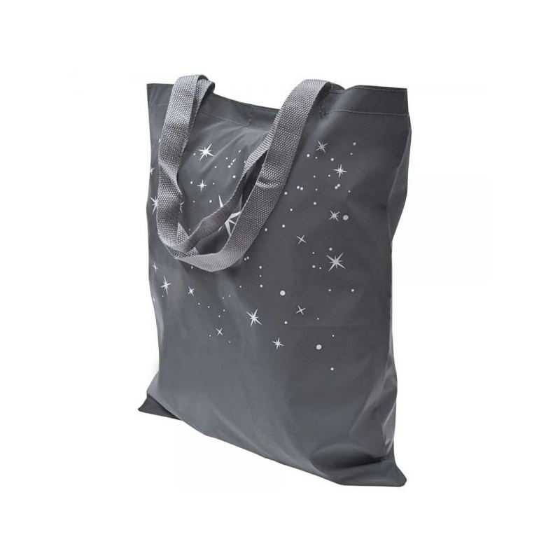 Lummavat tähistaevast kujutava disainiga helkurriidest kott.