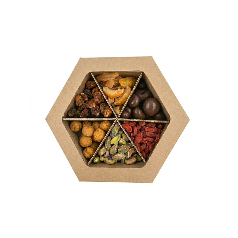 See ei ole lihtsalt suupistekarp – see on rännak läbi erinevate maailma nurkade. Iga sektor on täis puhast looduse väge ja särtsakat maitset, mis on pakendatud stiilsesse ja keskkonnasõbralikku karpi.