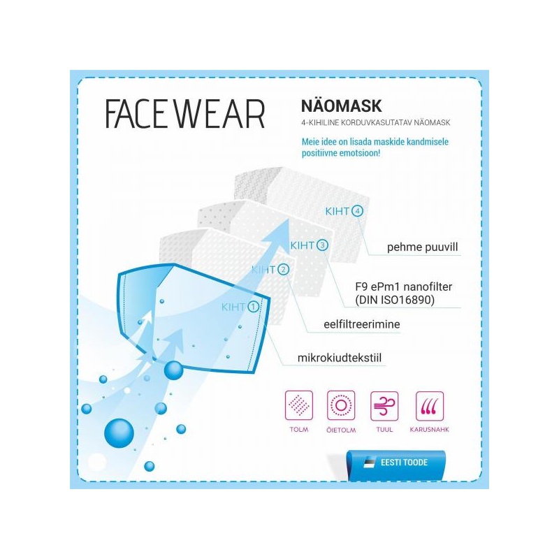 Näomaski sees olev filter: F9 ePm1 DIN ISO 16890
