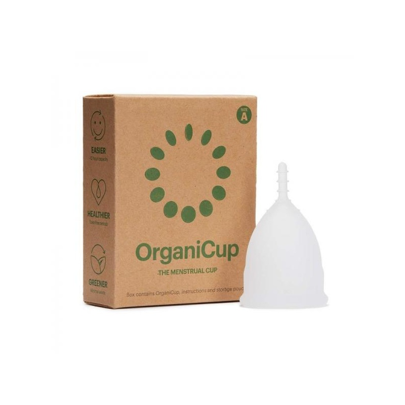 OrganiCup suurus A on sünteetiliste kemikaalide ja parfüümideta, sobib neile, kes ei ole sünnitanud. Lihtne kasutada, diskreetne ja usaldusväärne.