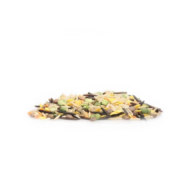 Pruun basmati riis*, punased poolitatud läätsed*, pruunid läätsed*, metsik riis*, dahli läätsed*, poolitatud rohelised herned*